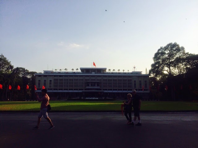 Rombongan bergambar di depan Presidential Palace sebaik tiba di HCM.